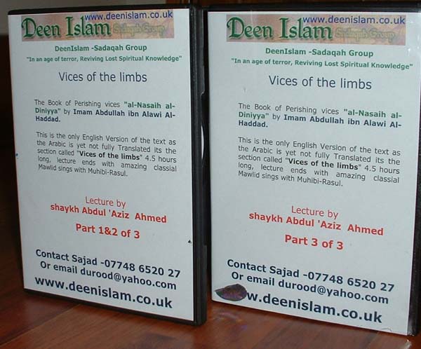 Shaykh Abdul 'Aziz Ahmed Fredrickes commentry of Vices of Limbs by Great Shaykh Imam Haddad alawi X 3 DVDS Coming out some time at the End or Middle of Shahr-Ramadhan 2004