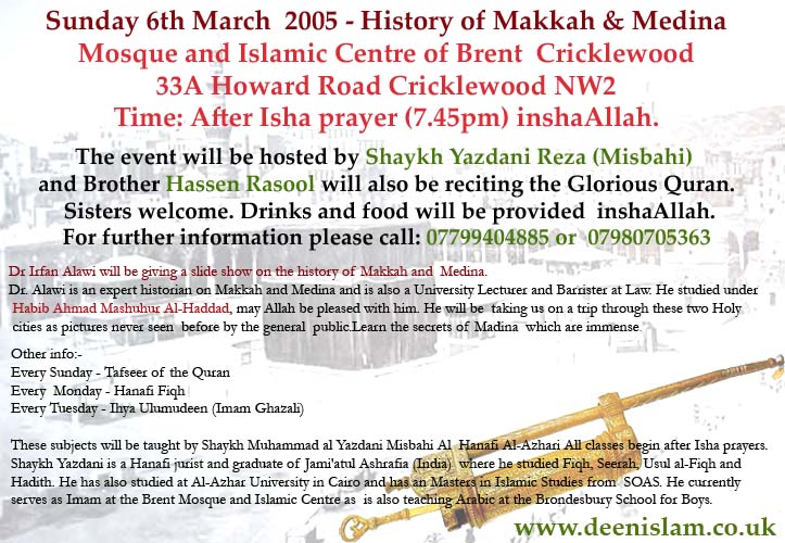 Every Sundays 7pm to 8pm Mosque and Islamic Centre of Brent Cricklewood
